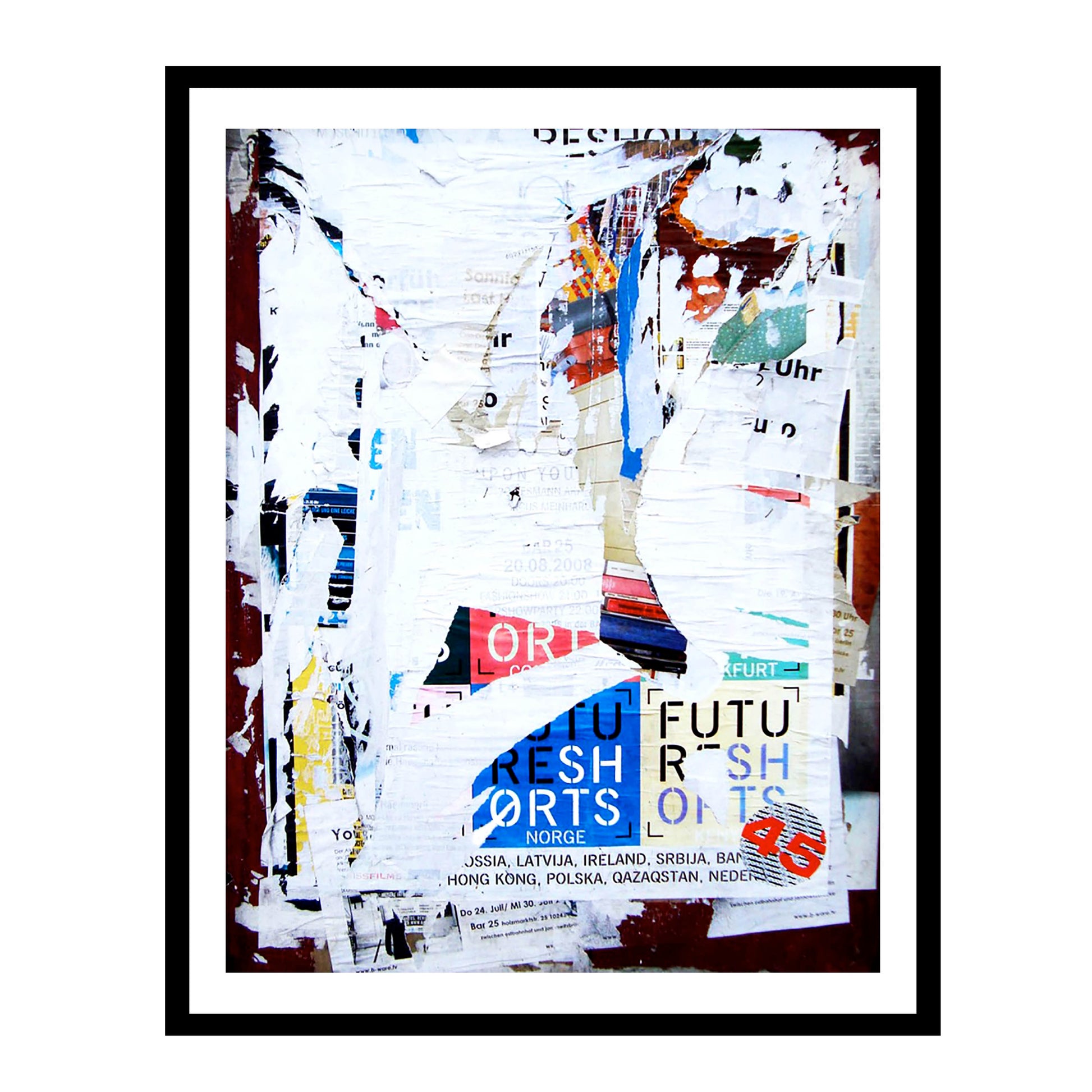 Abstract textures and surfaces of street poster remnants from the photograph series "36 Hours in Uruguay and Berlin Street Art."  Berlin, 2009. 33 x 42 in. unframed.