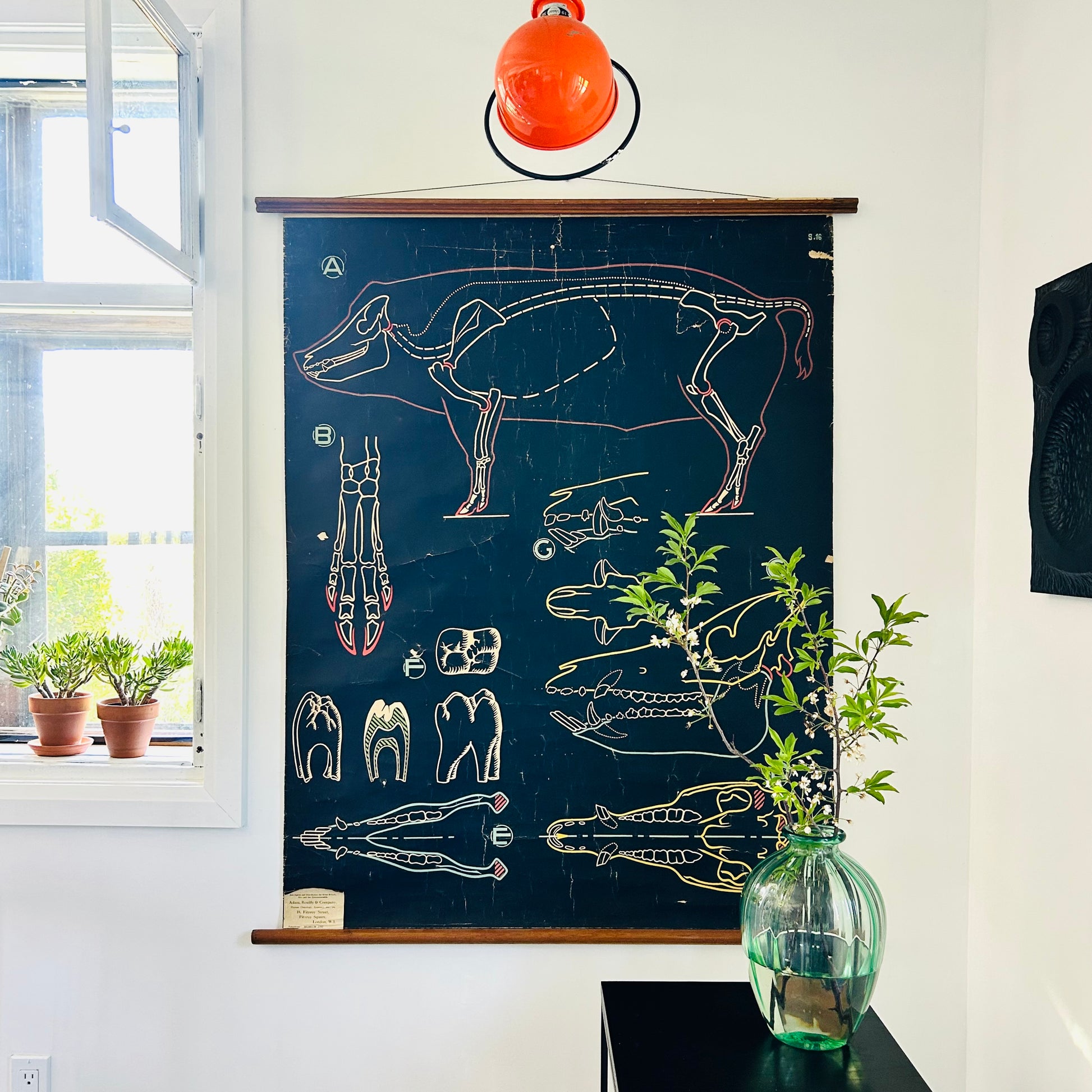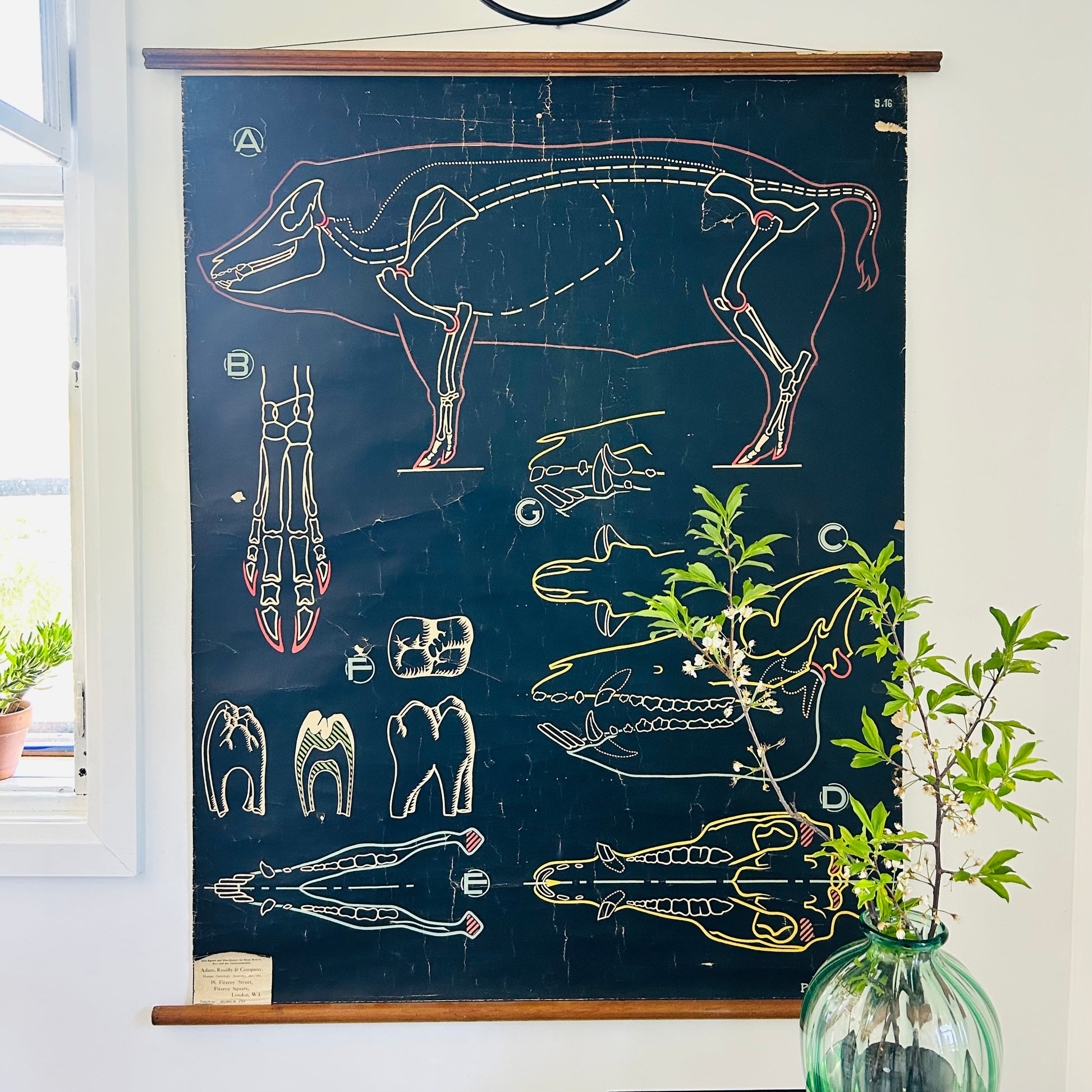 1947, Paris. Dr Auzoux French educational chart by P.Sougy - Porc (Pig). Distributor label, Adam, Rouilly & Company, London UK. In great vintage condition with age appropriate wear, see photos.