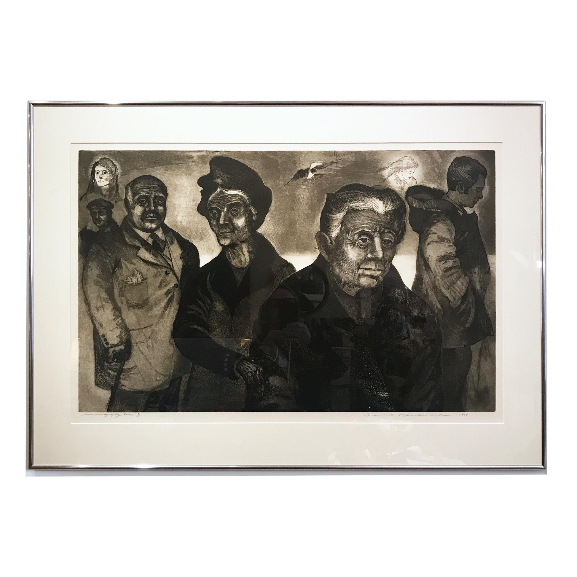 "Autobiography, Faces," Etching Aquatint, signed, 1969 and numbered 20/50.