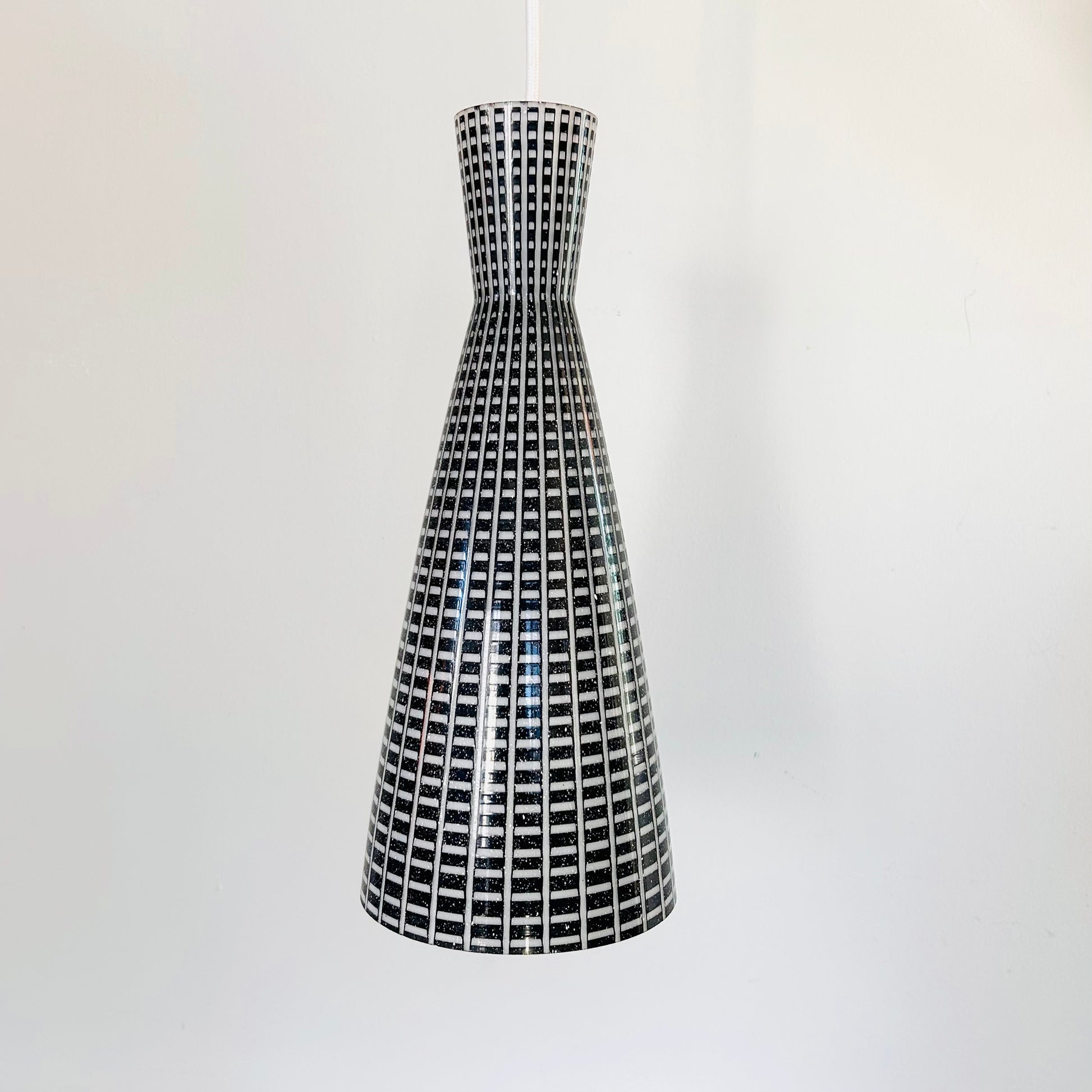 Diabolo Glass Pendant Lamp by Aloys Gangkofner for Peill and Putzler. Beautiful patterned yellow and black glass pendant lamps by Aloys F. Gangkofner for Peilll & Putzler. Germany 1950’s. Excellent Condition, new wiring. 12 3/4” x 5.5” wide. Sold as a pair.