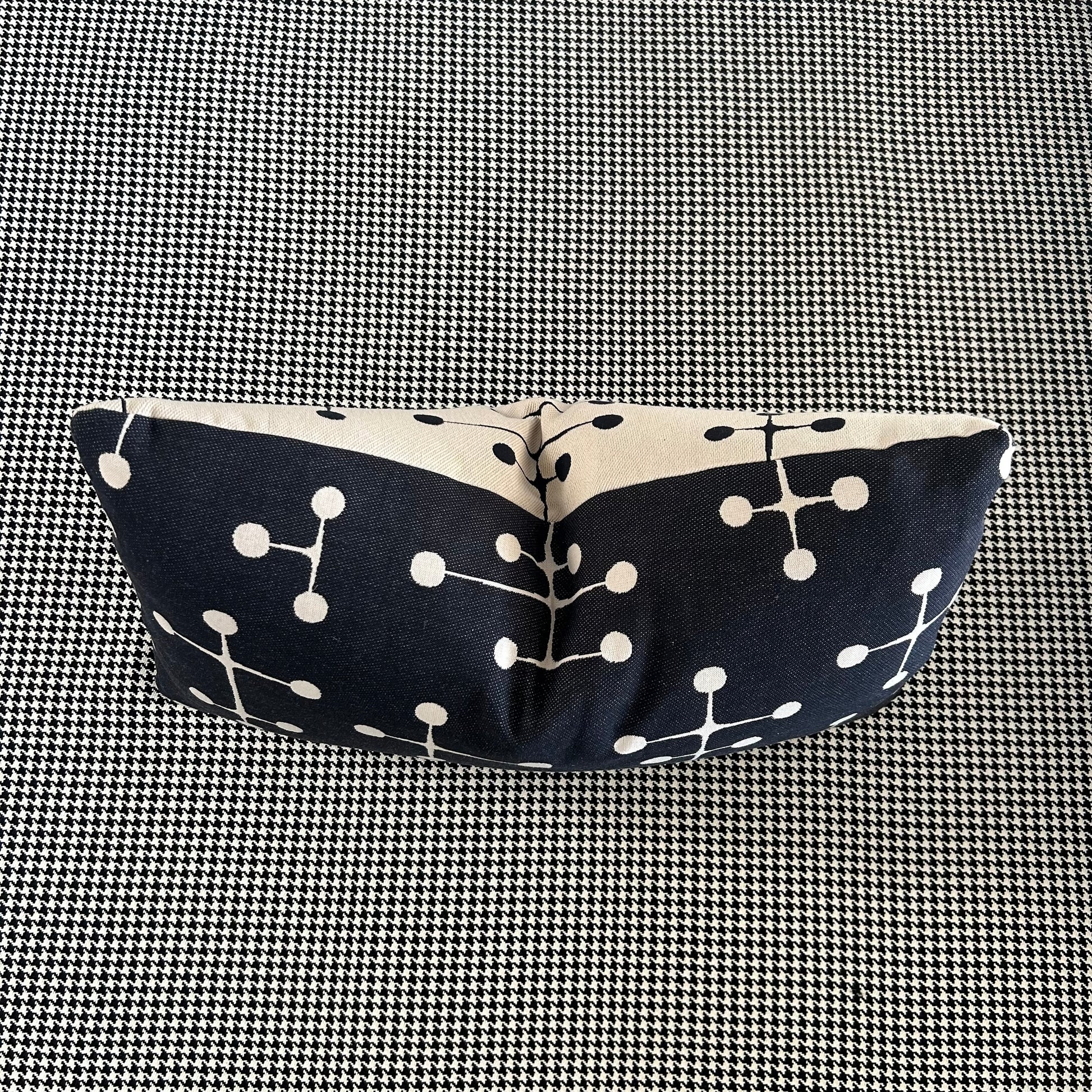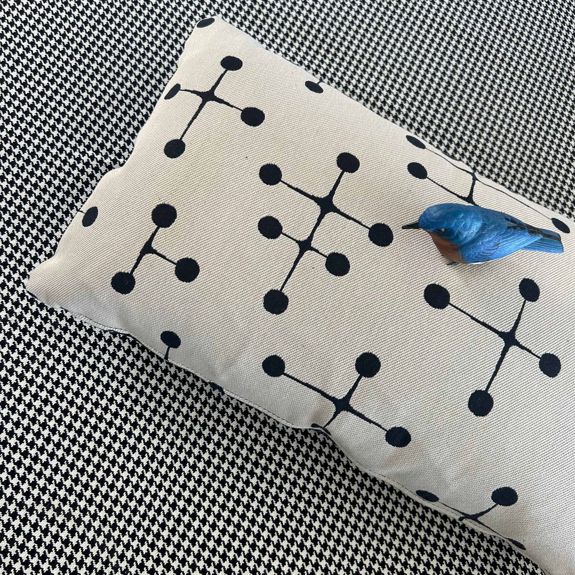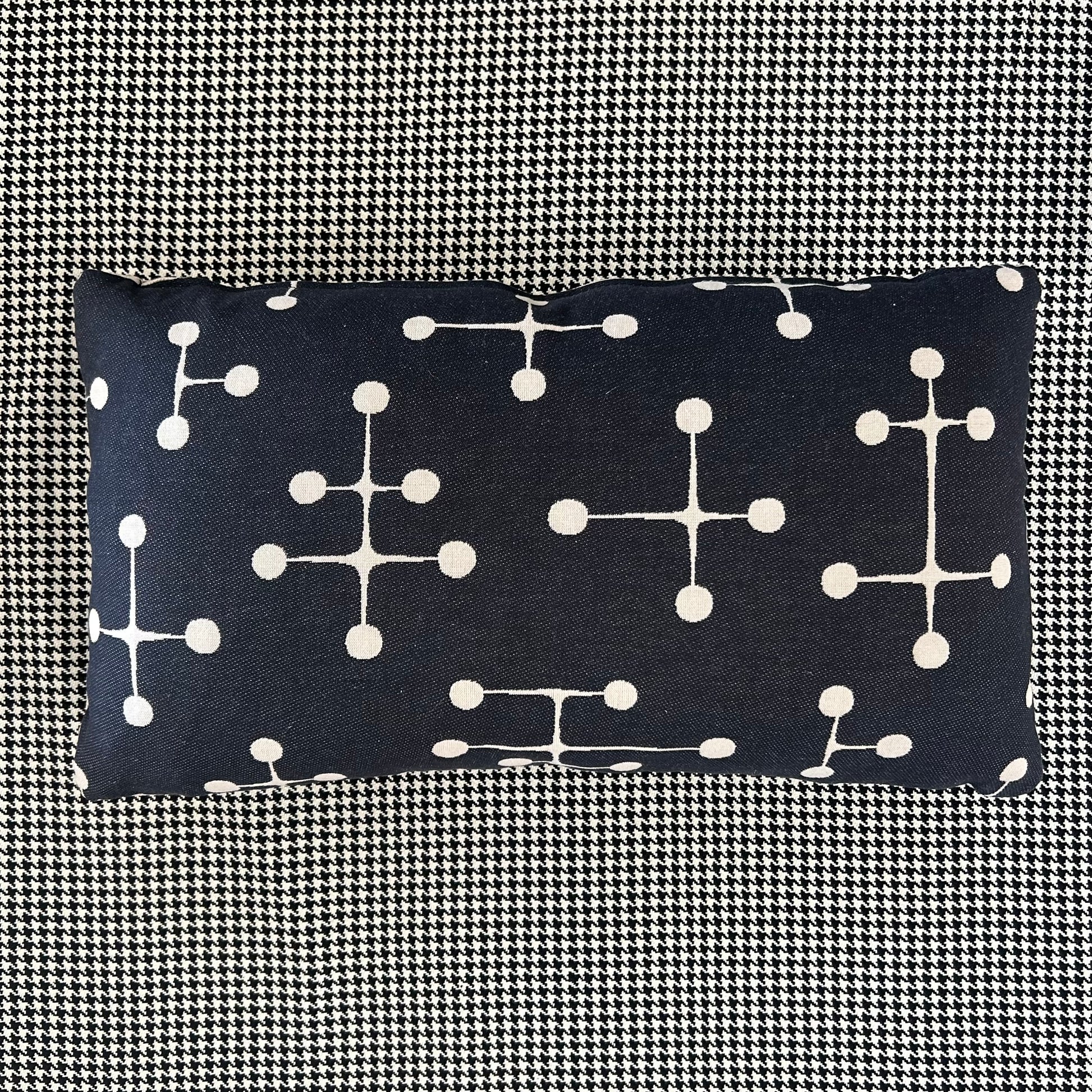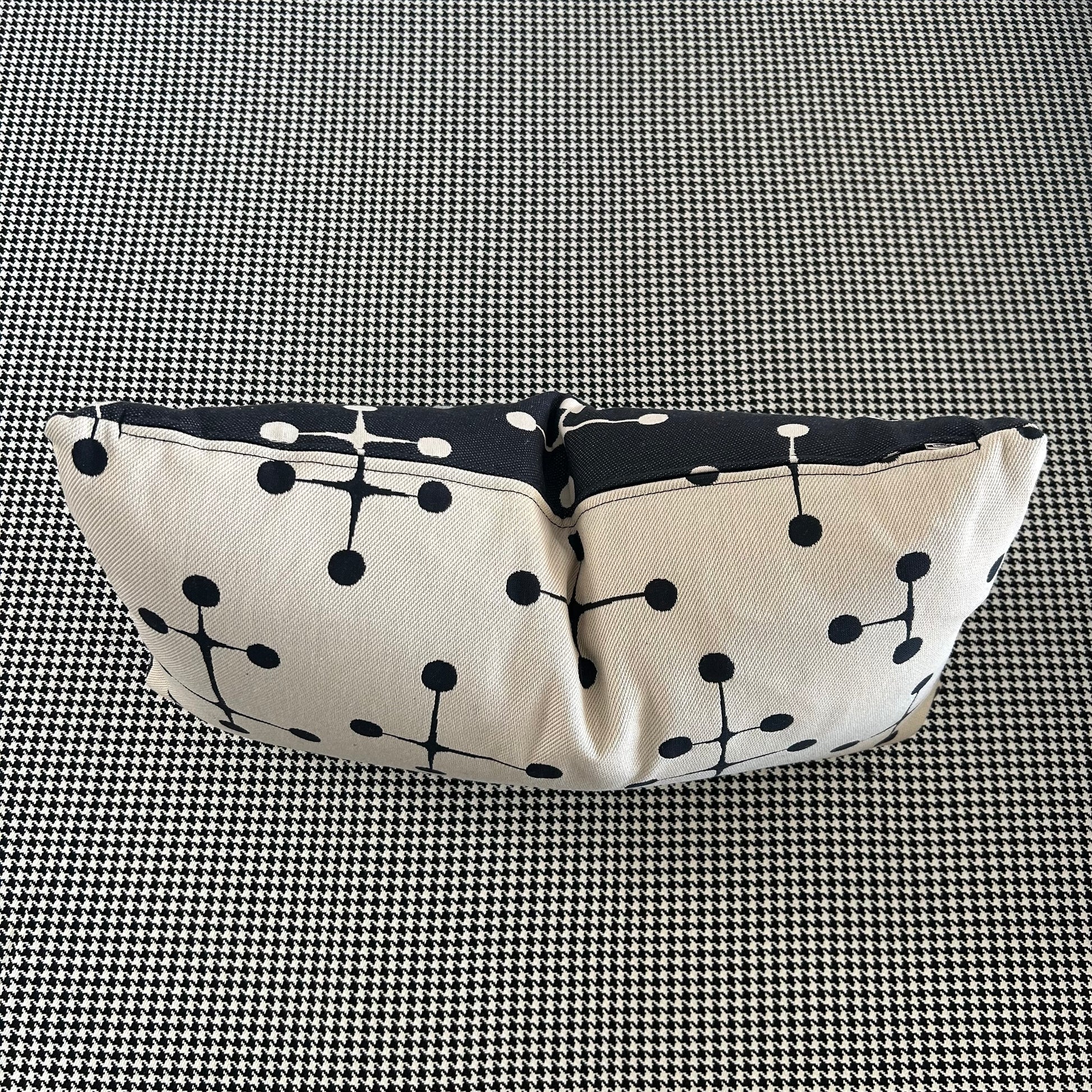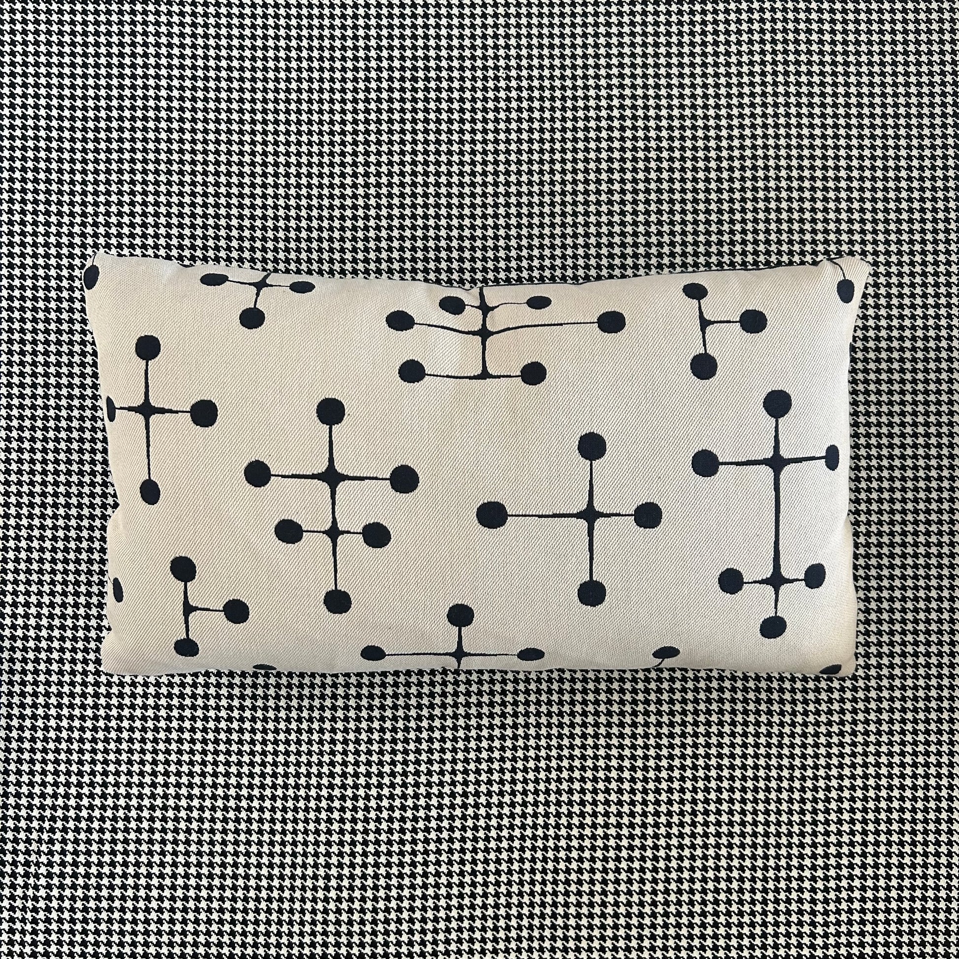 Feather cushions by Inabstracto. Eames Big Dot pattern. 21”x11”. Made in Toronto. Off white one side, black one side, Invisible zipper.