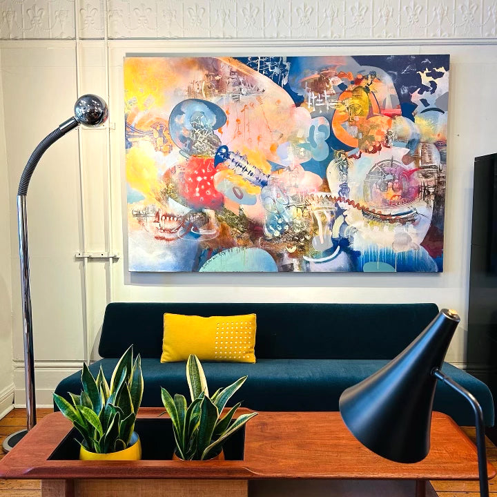 "Poor Idea Incubator", 2023, acrylic on canvas, 48x72in.