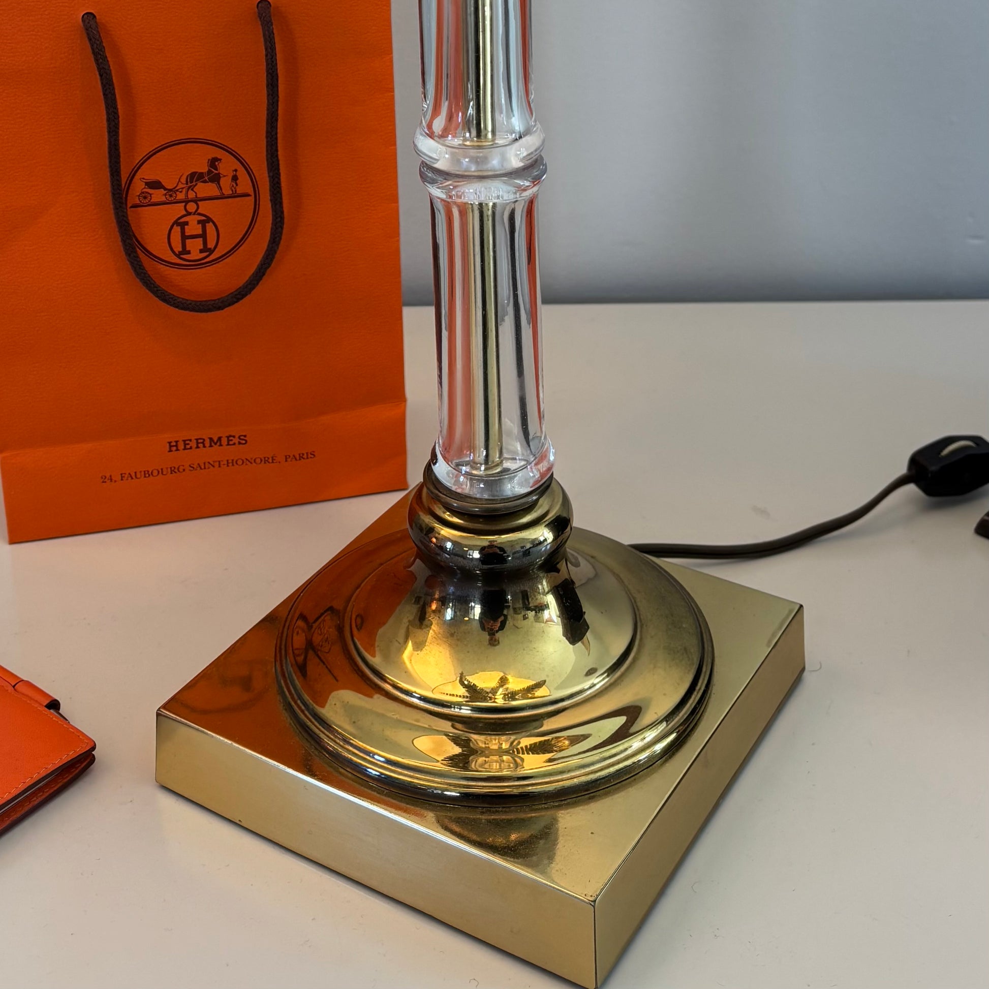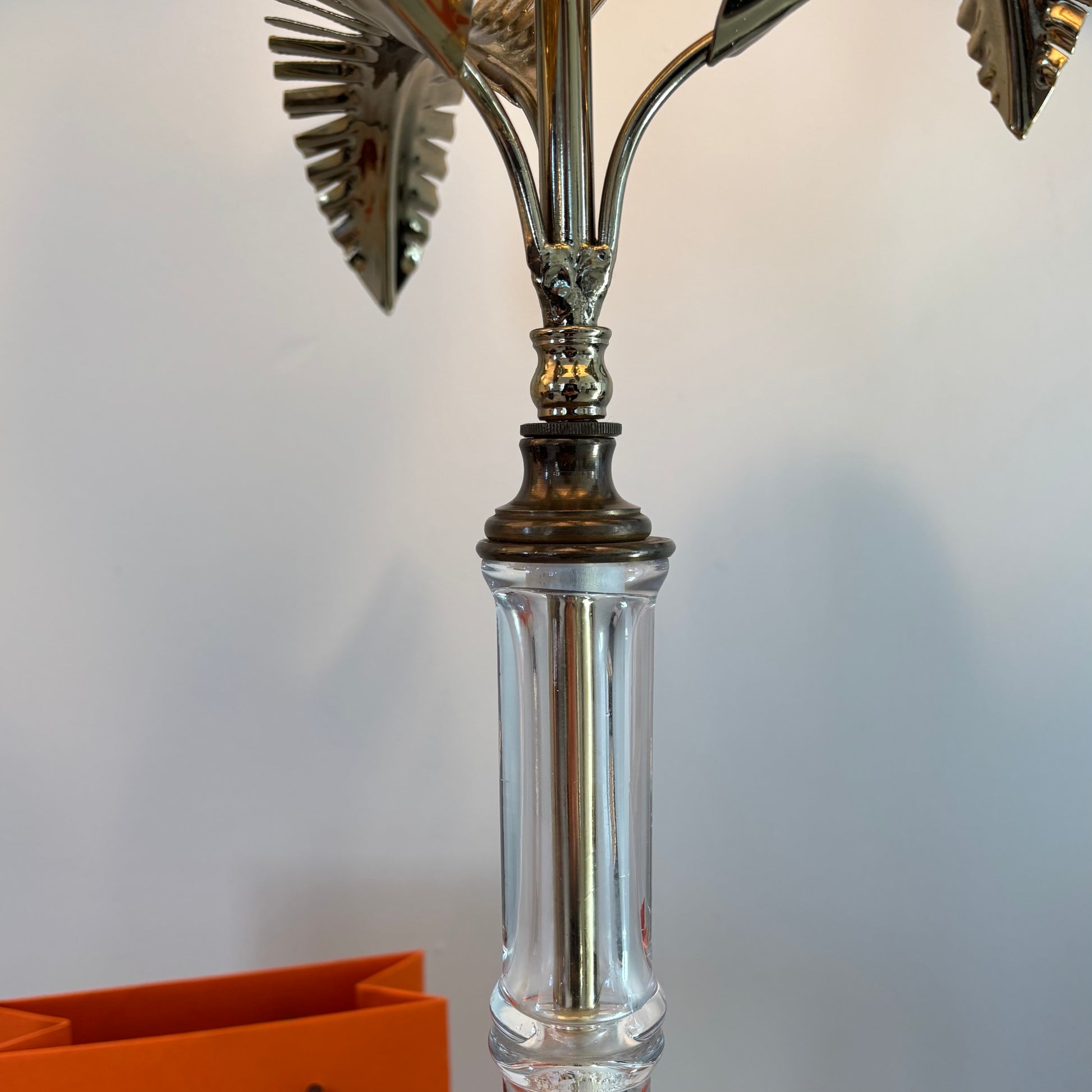 Sexy Hollywood Regency 1970’s Table Lamp with decorative Gold Palm Leaf/Tree Acrylic Clear Bamboo Stem. 34”high. Excellent Condition.