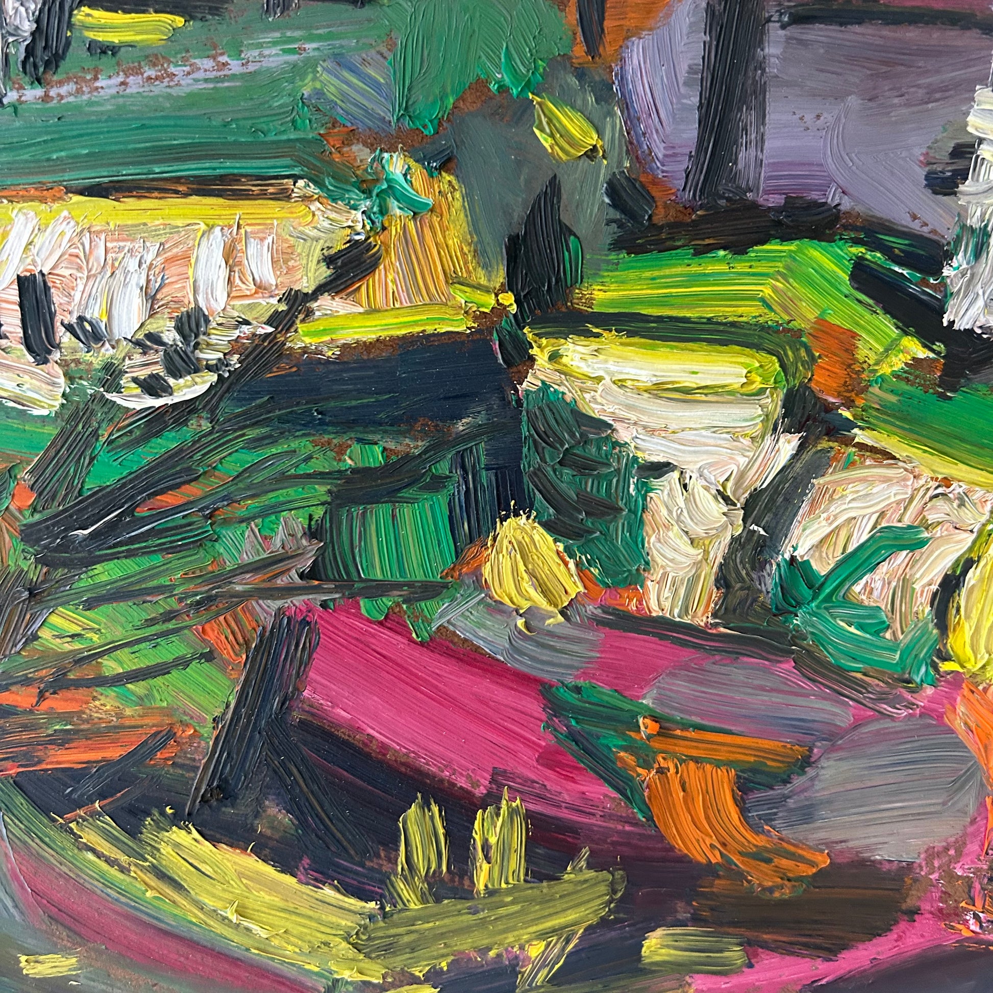 Byron Hodgins, Into The Woods, oil on panel, 2017. 12.5”x 15.5” framed. Signed on verso.
