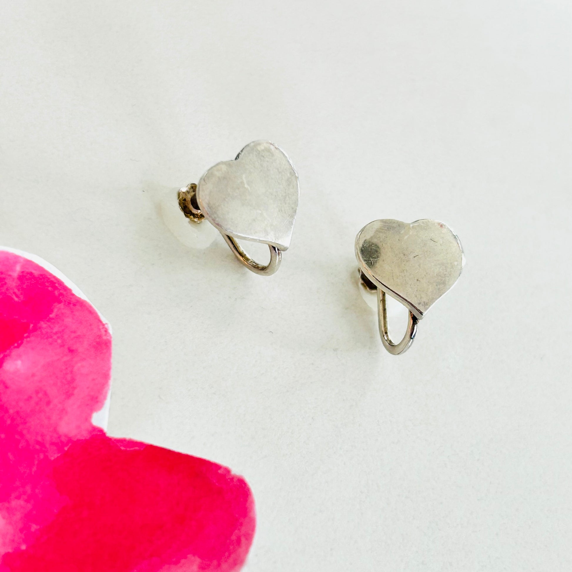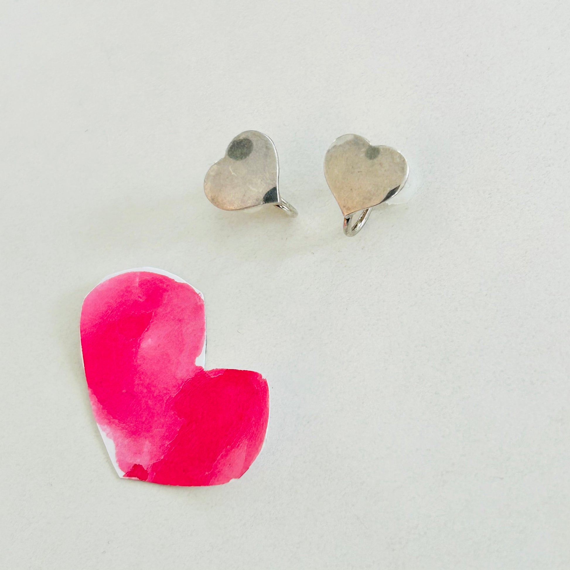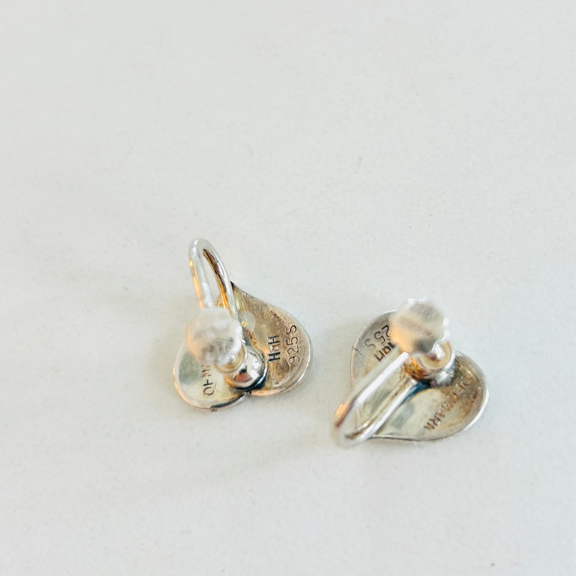 Charming sterling silver earrings by Karl Gustav Hansen for Hans Hansen. Screw back; excellent condition. Heart 1/2". Denmark, 1940s.