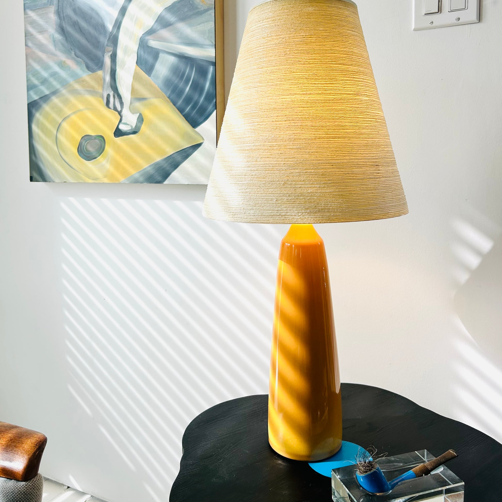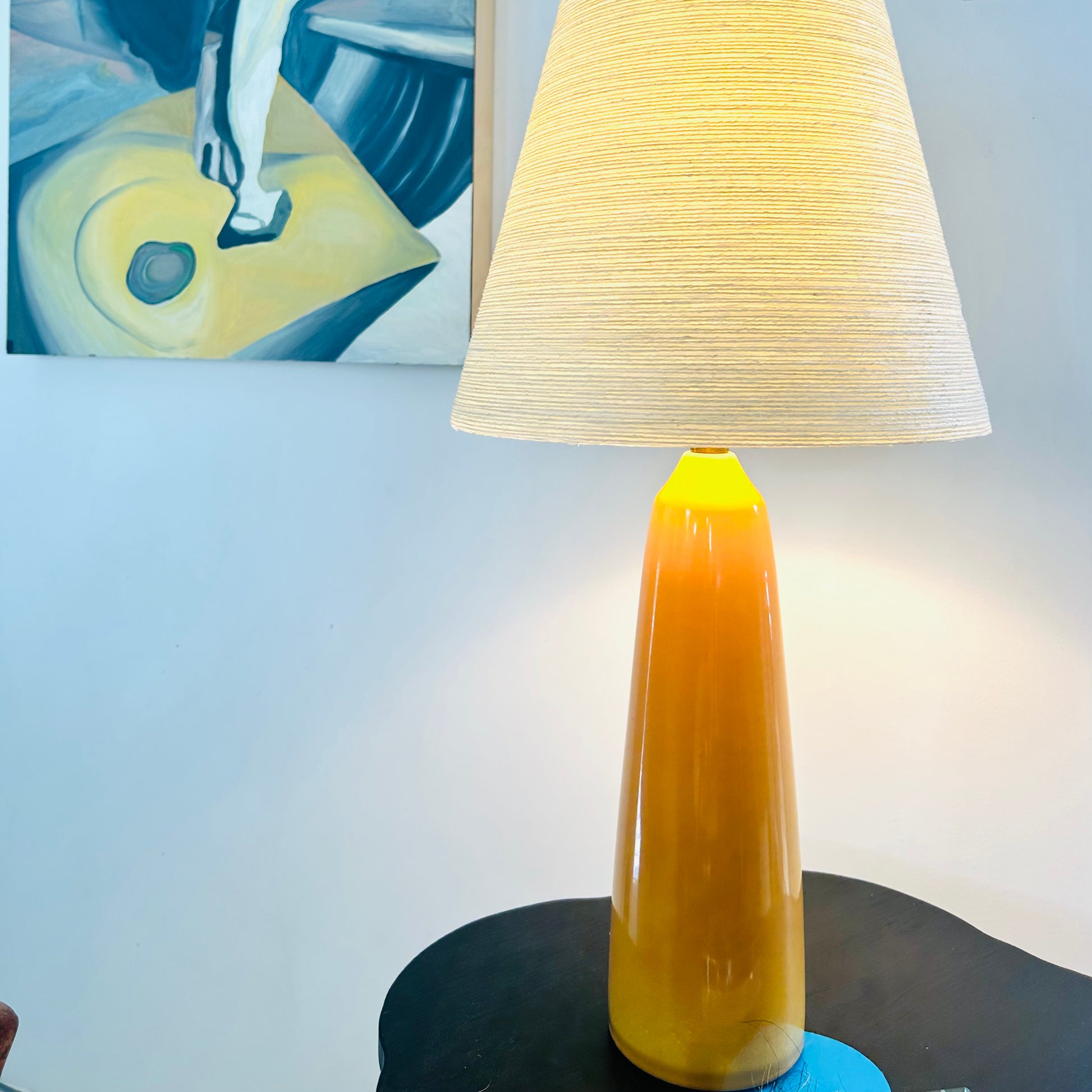 Original Lotte Lamp Model No. 600. in a beautiful warm yellow, 26” high, all original. Made in Canada in the '60s by The Bostlund family.