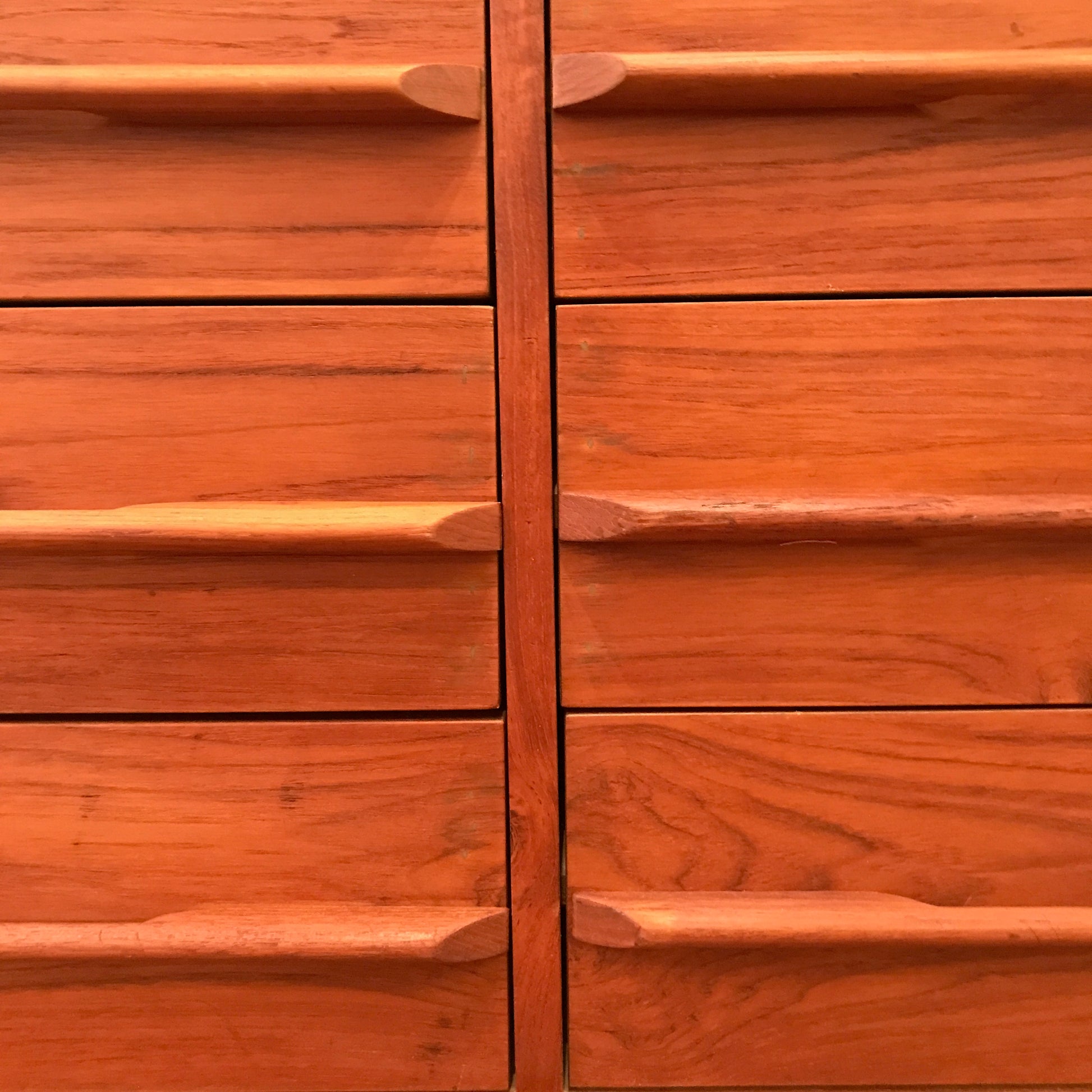 1960s nine drawer teak dresser, nice low profile. Loads of storage. Restored.