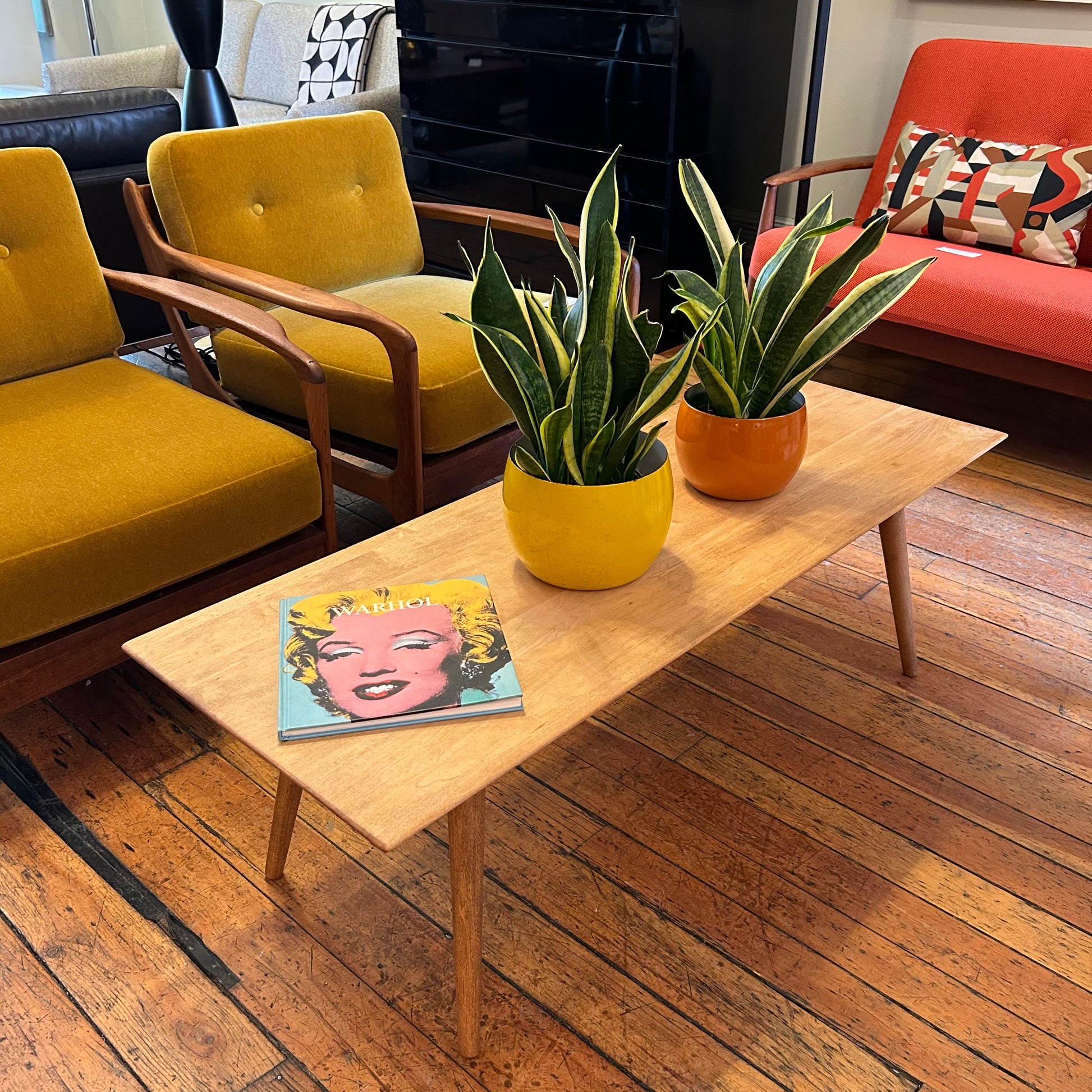 1950’s Paul McCobb solid maple coffee table. Beautiful minimalist design, low profile. Excellent restored condition. 48” x 17.5” x 16” high