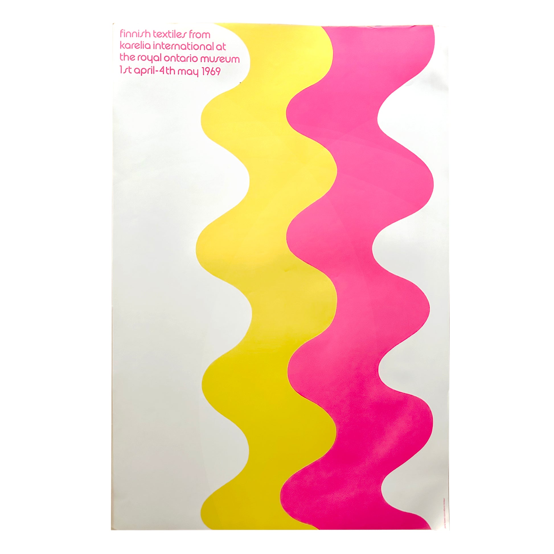 Exhibition Poster, Finnish Textiles from Karelia International at The Royal Ontario Museum 1969. 36” x 24” unframed. Design by Janis Kravis Consultants. In very good condition.