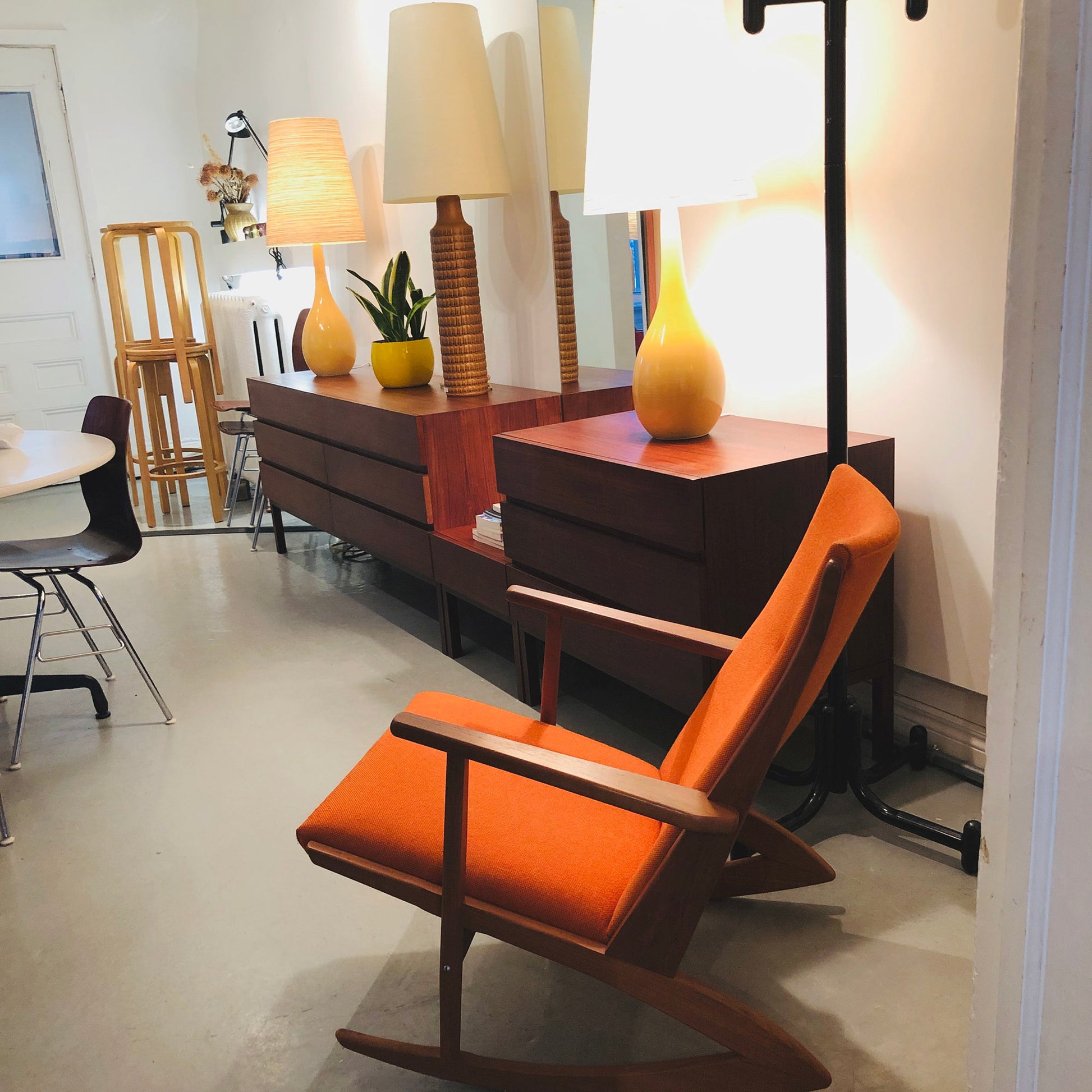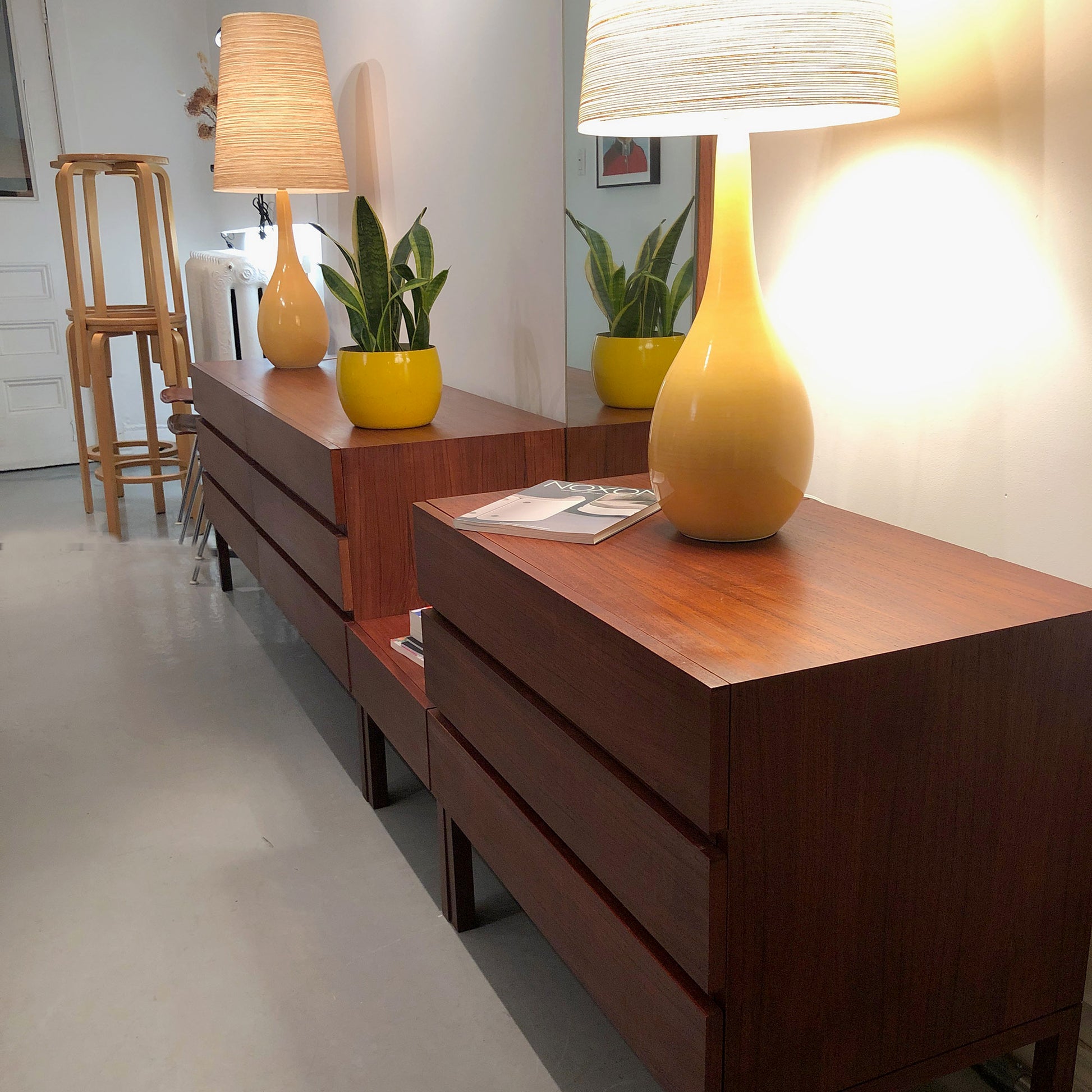 Fantastic set of REFF teak dressers and vanity with mirror. RARE to find this whole set together. Excellent original condition. All marked. Made in Canada, 1960s.