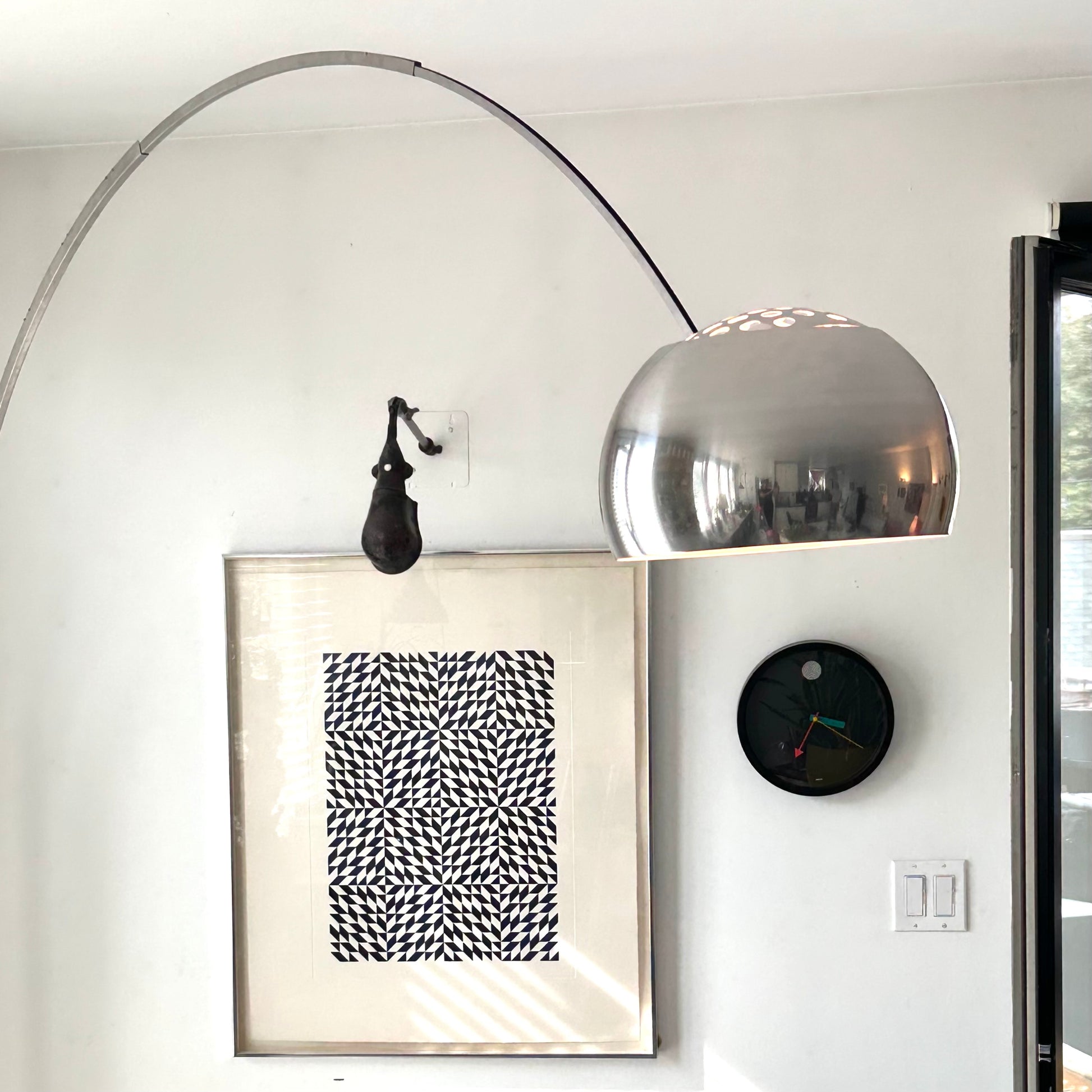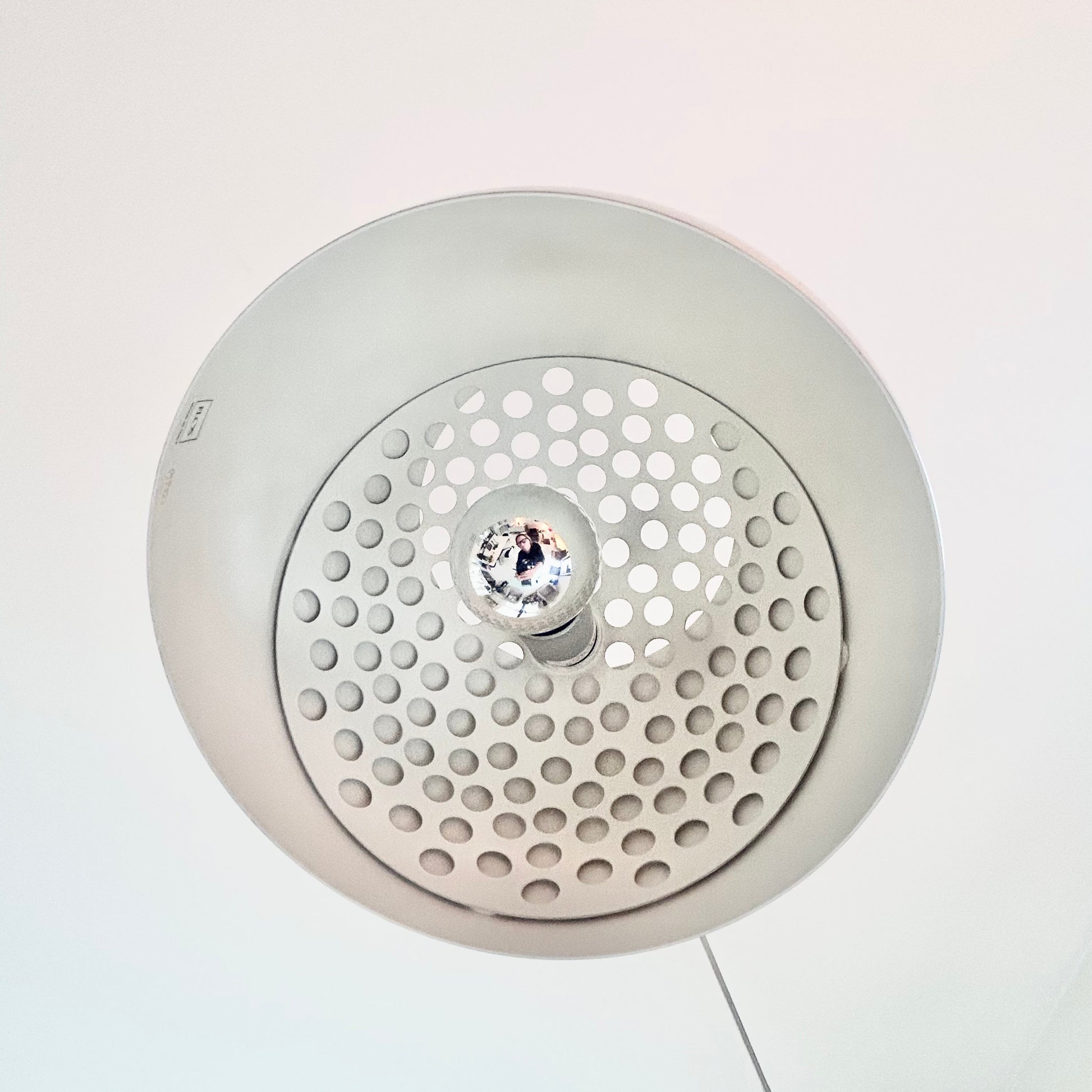 The Arco lamp has become one of the most well-recognised, imitated and referenced pieces of Italian design. Reaching over two meters in height with a swivelling telescopic arm makes it easy to target the light to the desired direction. Sturdy, gorgeous Carrara marble base, arched aluminum arm, stainless steel shade with white adjustable perforated metal reflector. In excellent condition.