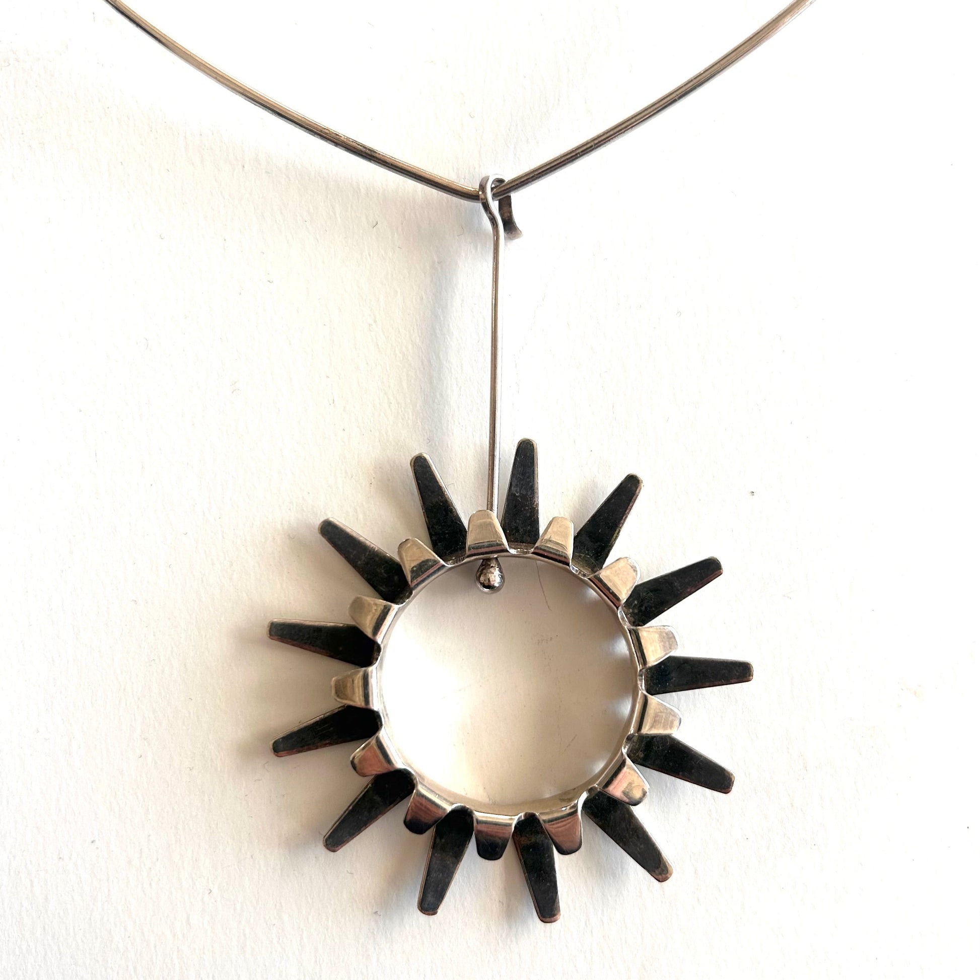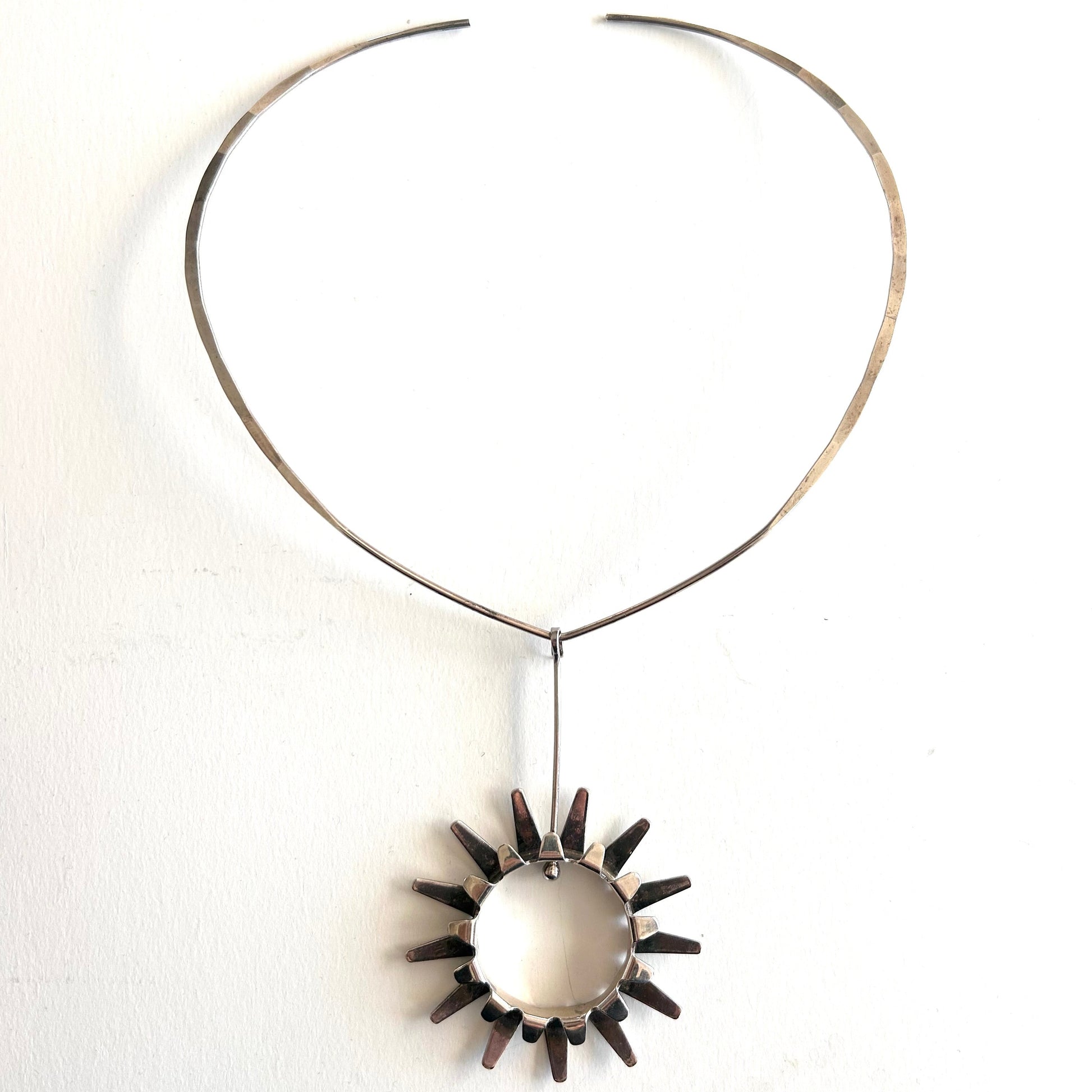 Stunning Tone Vigeland Sterling "Sol" pendant on neck ring. Stamped, Sterling, Norway.