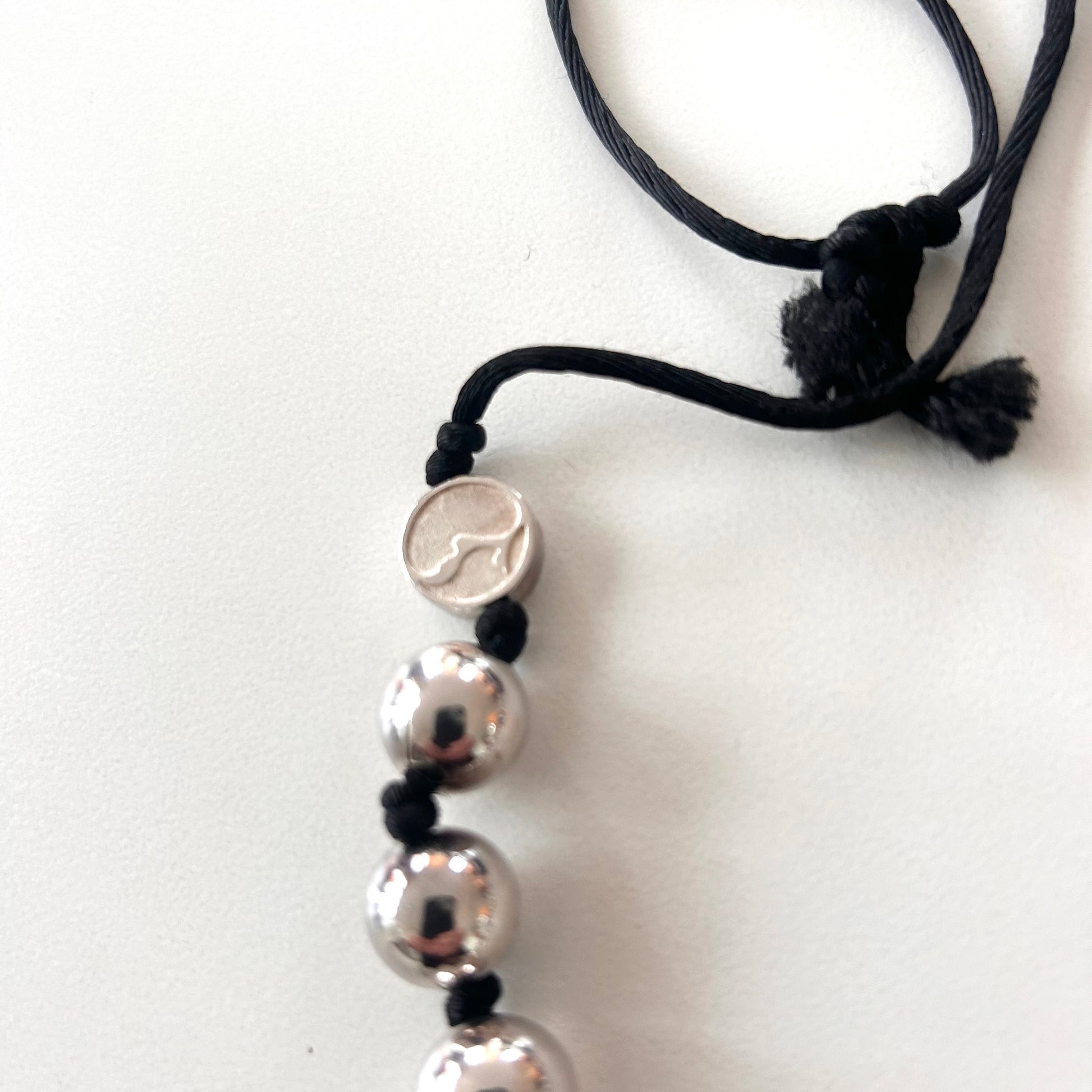 Afra and Tobia Scarpa Sfere necklace, a reinvention of a string of pearls in silver and cloth. Original brochure and drawstring pouch. Excellent condition. 1990s, Italy for San Lorenzo.