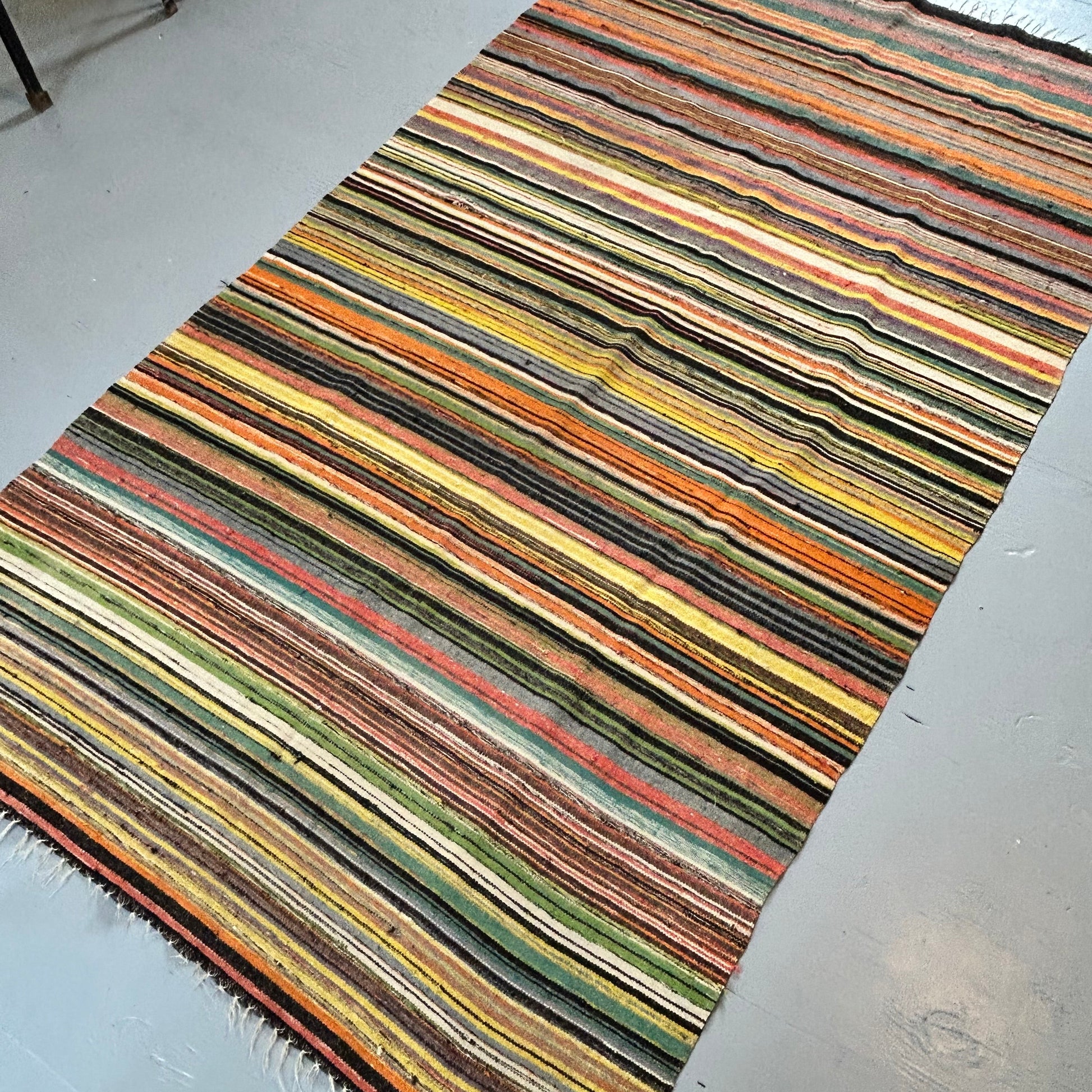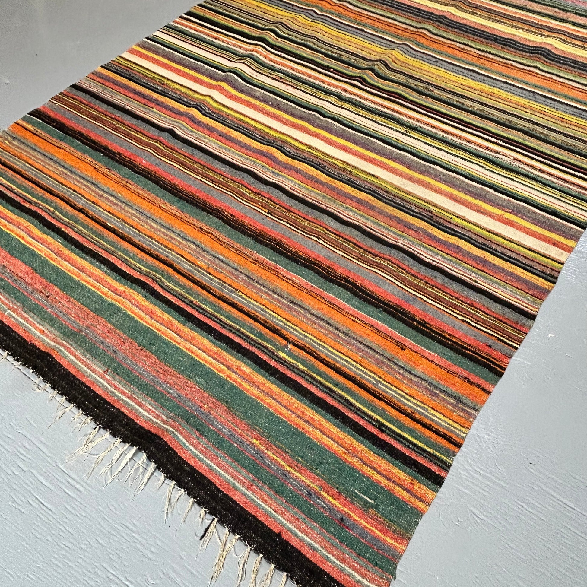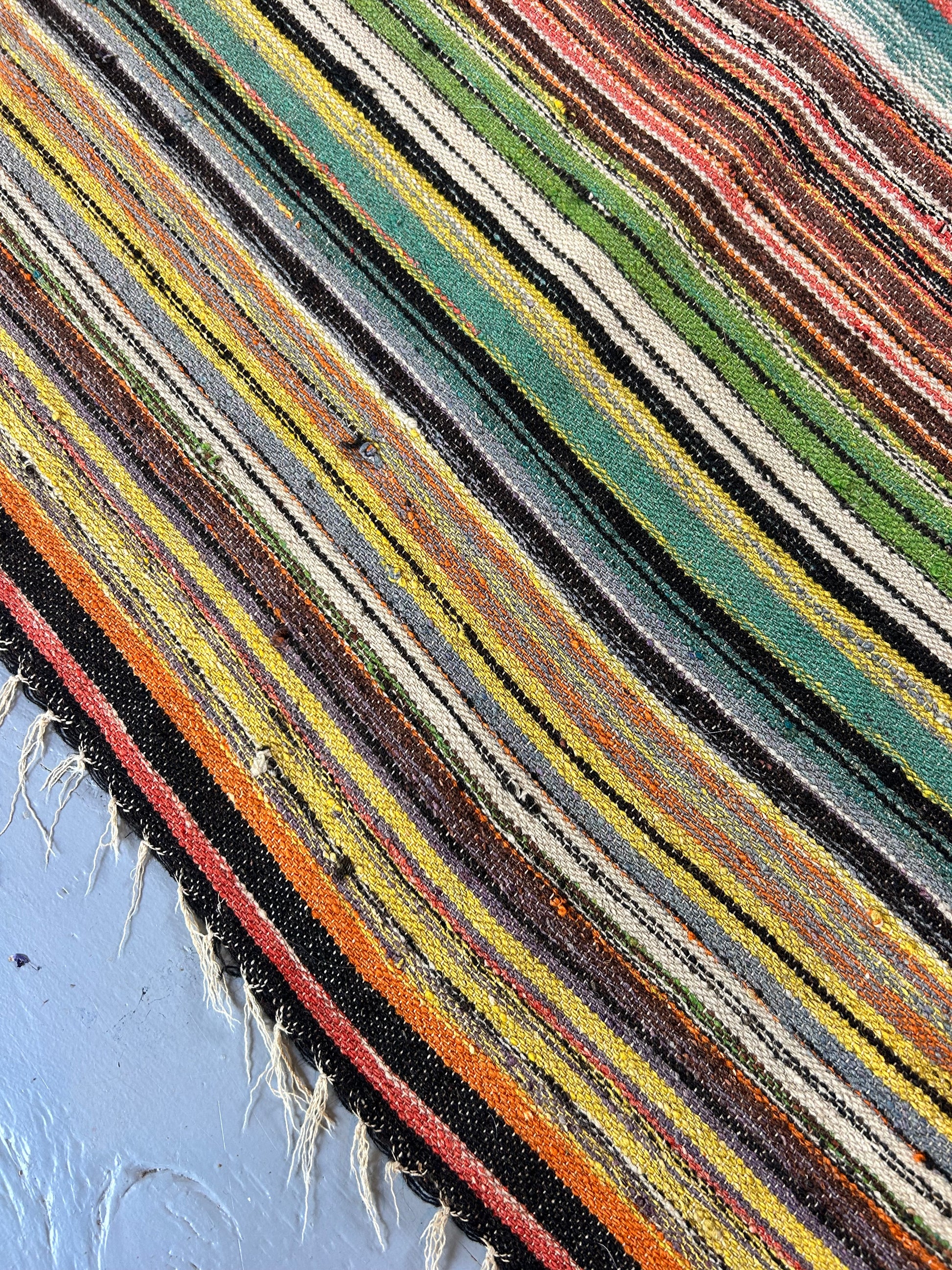Incredible colour palette on this vintage Turkish Kilim. Wool & cotton. 77x42 in. In very good condition with age appropriate wear. See photos.