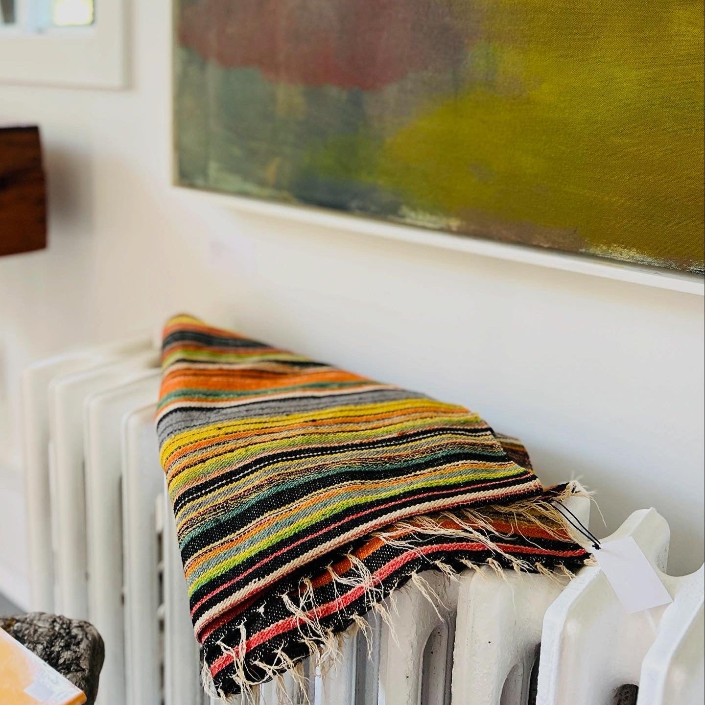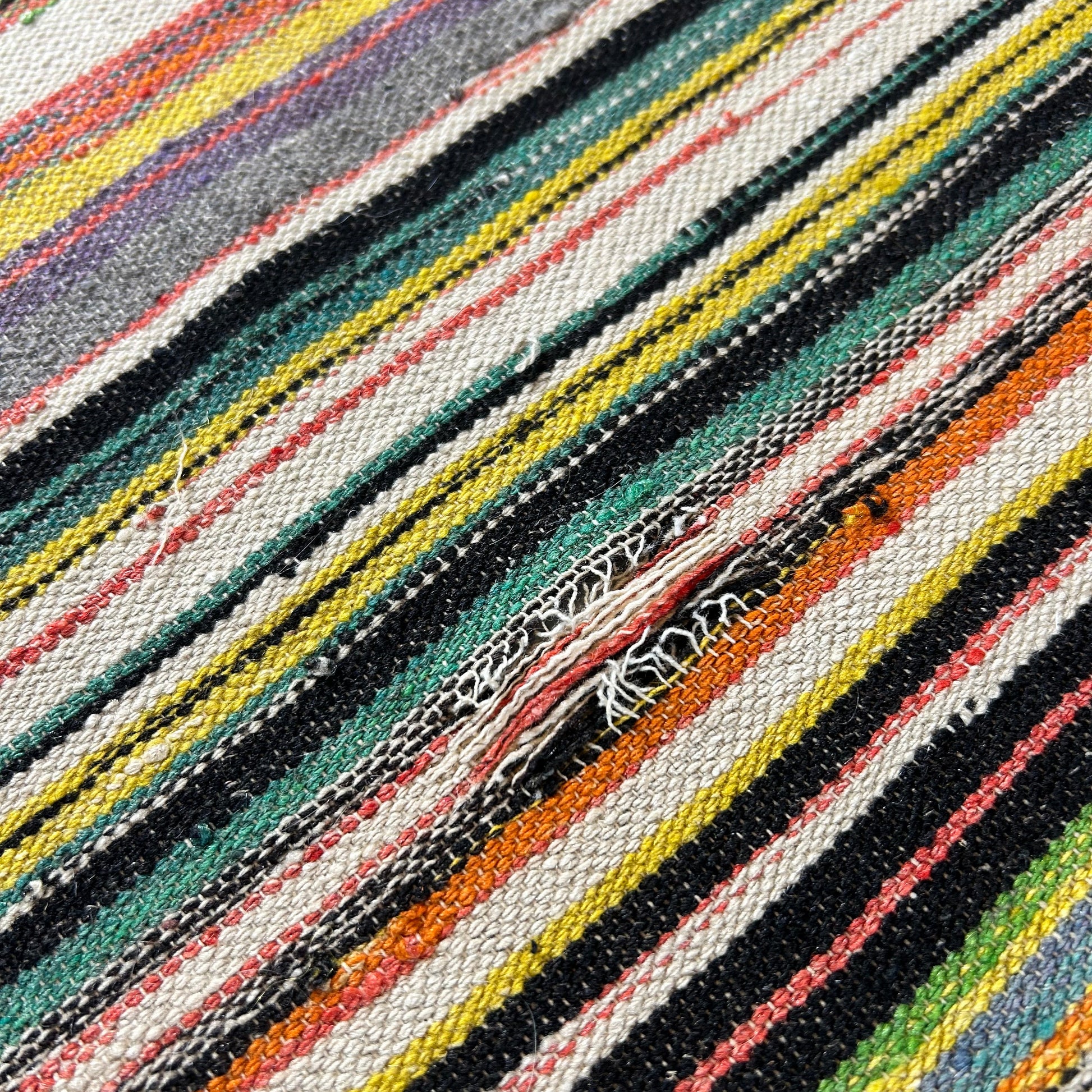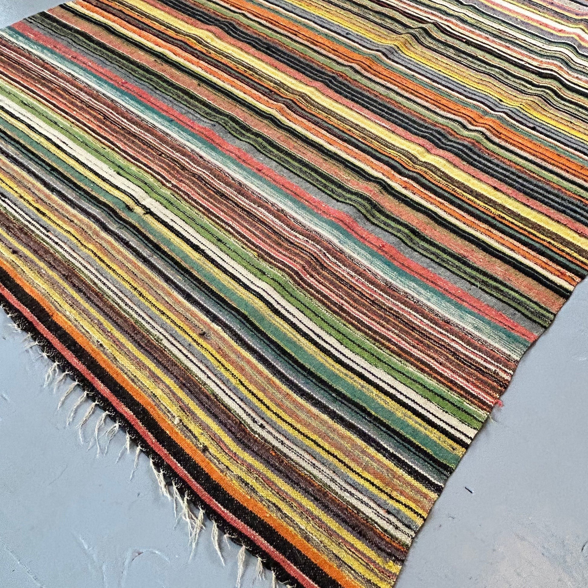 Incredible colour palette on this vintage Turkish Kilim. Wool & cotton. 77x42 in. In very good condition with age appropriate wear. See photos.